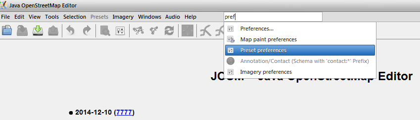 JOSM menu has a lot of items. And sometimes it's hard to find something. Mac OS X allows to search within menu. But it would be nice to have such feature for Windows and Linux too.