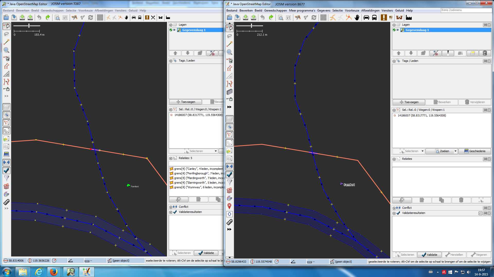 Revision: 8677 Repository Root: http://josm.openstreetmap.de/svn Relative URL: ^/trunk Last Changed Author: Don-vip Last Changed Date: 2015-08-21 22:18:03 +0200 (Fri, 21 Aug 2015) Build-Date: 2015-08-21 23:32:08 URL: http://josm.openstreetmap.de/svn/trunk Repository UUID: 0c6e7542-c601-0410-84e7-c038aed88b3b Last Changed Rev: 8677 Identification: JOSM/1.5 (8677 nl) Windows 7 64-Bit Memory Usage: 167 MB / 247 MB (32 MB allocated, but free) Java version: 1.8.0_31, Oracle Corporation, Java HotSpot(TM) Client VM Dataset consistency test: No problems found Plugins: - buildings_tools (31361) - geotools (31126) - jts (31126) - measurement (31289) - opendata (31241) - pbf (31241) - utilsplugin2 (31463) Last errors/warnings: - E: org.openstreetmap.josm.io.OsmTransferException: java.net.SocketTimeoutException: Read timed out. Oorzaak: java.net.SocketTimeoutException: Read timed out