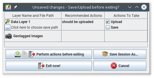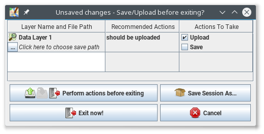 . Layers that cannot save or upload their data are added to the dialog, but the only way to save their data is to save a session file. The dialog reflects the layer capabilities accordingly.