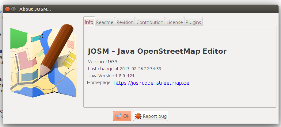 URL:http://josm.openstreetmap.de/svn/trunk Repository:UUID: 0c6e7542-c601-0410-84e7-c038aed88b3b Last:Changed Date: 2017-02-26 23:10:22 +0100 (Sun, 26 Feb 2017) Build-Date:2017-02-26 22:34:39 Revision:11639 Relative:URL: ^/trunk Identification: JOSM/1.5 (11639 en) Linux Ubuntu 16.04.1 LTS Memory Usage: 955 MB / 955 MB (789 MB allocated, but free) Java version: 1.8.0_121-b13, Oracle Corporation, Java HotSpot(TM) 64-Bit Server VM Screen: :0.0 1920x1080 Maximum Screen Size: 1920x1080 Plugins: + ColorPlugin (11) + FastDraw (33004) + Mapillary (v1.4.2) + RoadSigns (33179) + apache-commons (32994) + apache-http (32699) + auto_tools (1479831713) + buildings_tools (33004) + download_along (32946) + jogl (1.0.46) + kendzi3d (1.0.194) + kendzi3d-resources (0.0.1) + log4j (32699) + osm-obj-info (1484152384) + reverter (33088) + scripting (30764) + tageditor (33021) + terracer (33088) + todo (30000) + tofix (1485295715) + turnlanes-tagging (254) + undelete (32699) + utilsplugin2 (33124) + waydownloader (33167) Tagging presets: + https://josm.openstreetmap.de/josmfile?page=Presets/Quick-highways&zip=1 Map paint styles: - https://josm.openstreetmap.de/josmfile?page=Styles/Lane_and_Road_Attributes&zip=1 - https://raw.githubusercontent.com/mapbox/mapping/master/JOSM/data-qa.mapcss - https://josm.openstreetmap.de/josmfile?page=Styles/Modified&zip=1 - https://gist.github.com/<user.name>/b313aef259f32432ee54259818d1ef74/archive/0d4bcbff8c95fc79c77c5f78bdbc28958e23a6ea.zip Last errors/warnings: - W: java.io.IOException: Attribution is not loaded yet - W: java.io.IOException: Attribution is not loaded yet - W: java.io.IOException: Attribution is not loaded yet - W: java.io.IOException: Attribution is not loaded yet - W: java.io.IOException: Attribution is not loaded yet - W: java.io.IOException: Attribution is not loaded yet - W: java.io.IOException: Attribution is not loaded yet - W: java.io.IOException: Attribution is not loaded yet - W: java.io.IOException: Attribution is not loaded yet - W: java.io.IOException: Attribution is not loaded yet === REPORTED CRASH DATA === BugReportExceptionHandler#handleException: No data collected. Warning issued by: BugReportExceptionHandler#handleException === STACK TRACE === Thread: AWT-EventQueue-0 (18) of main org.openstreetmap.josm.plugins.PluginException: An error occurred in plugin tofix at org.openstreetmap.josm.plugins.PluginProxy.handlePluginException(PluginProxy.java:39) at org.openstreetmap.josm.plugins.PluginProxy.mapFrameInitialized(PluginProxy.java:50) at org.openstreetmap.josm.gui.MainPanel.updateContent(MainPanel.java:78) at org.openstreetmap.josm.gui.MainPanel$1.beforeFirstLayerAdded(MainPanel.java:155) at org.openstreetmap.josm.gui.layer.MainLayerManager.realAddLayer(MainLayerManager.java:248) at org.openstreetmap.josm.gui.layer.LayerManager.lambda$addLayer$0(LayerManager.java:189) at org.openstreetmap.josm.gui.util.GuiHelper.runInEDTAndWaitWithException(GuiHelper.java:138) at org.openstreetmap.josm.gui.layer.LayerManager.addLayer(LayerManager.java:189) at org.openstreetmap.josm.actions.AddImageryLayerAction.actionPerformed(AddImageryLayerAction.java:139) at javax.swing.AbstractButton.fireActionPerformed(AbstractButton.java:2022) at javax.swing.AbstractButton$Handler.actionPerformed(AbstractButton.java:2348) at javax.swing.DefaultButtonModel.fireActionPerformed(DefaultButtonModel.java:402) at javax.swing.DefaultButtonModel.setPressed(DefaultButtonModel.java:259) at javax.swing.AbstractButton.doClick(AbstractButton.java:376) at javax.swing.plaf.basic.BasicMenuItemUI.doClick(BasicMenuItemUI.java:833) at javax.swing.plaf.basic.BasicMenuItemUI$Handler.mouseReleased(BasicMenuItemUI.java:877) at java.awt.AWTEventMulticaster.mouseReleased(AWTEventMulticaster.java:289) at java.awt.Component.processMouseEvent(Component.java:6533) at javax.swing.JComponent.processMouseEvent(JComponent.java:3324) at java.awt.Component.processEvent(Component.java:6298) at java.awt.Container.processEvent(Container.java:2236) at java.awt.Component.dispatchEventImpl(Component.java:4889) at java.awt.Container.dispatchEventImpl(Container.java:2294) at java.awt.Component.dispatchEvent(Component.java:4711) at java.awt.LightweightDispatcher.retargetMouseEvent(Container.java:4888) at java.awt.LightweightDispatcher.processMouseEvent(Container.java:4525) at java.awt.LightweightDispatcher.dispatchEvent(Container.java:4466) at java.awt.Container.dispatchEventImpl(Container.java:2280) at java.awt.Window.dispatchEventImpl(Window.java:2746) at java.awt.Component.dispatchEvent(Component.java:4711) at java.awt.EventQueue.dispatchEventImpl(EventQueue.java:758) at java.awt.EventQueue.access$500(EventQueue.java:97) at java.awt.EventQueue$3.run(EventQueue.java:709) at java.awt.EventQueue$3.run(EventQueue.java:703) at java.security.AccessController.doPrivileged(Native Method) at java.security.ProtectionDomain$JavaSecurityAccessImpl.doIntersectionPrivilege(ProtectionDomain.java:80) at java.security.ProtectionDomain$JavaSecurityAccessImpl.doIntersectionPrivilege(ProtectionDomain.java:90) at java.awt.EventQueue$4.run(EventQueue.java:731) at java.awt.EventQueue$4.run(EventQueue.java:729) at java.security.AccessController.doPrivileged(Native Method) at java.security.ProtectionDomain$JavaSecurityAccessImpl.doIntersectionPrivilege(ProtectionDomain.java:80) at java.awt.EventQueue.dispatchEvent(EventQueue.java:728) at java.awt.EventDispatchThread.pumpOneEventForFilters(EventDispatchThread.java:201) at java.awt.EventDispatchThread.pumpEventsForFilter(EventDispatchThread.java:116) at java.awt.EventDispatchThread.pumpEventsForHierarchy(EventDispatchThread.java:105) at java.awt.EventDispatchThread.pumpEvents(EventDispatchThread.java:101) at java.awt.EventDispatchThread.pumpEvents(EventDispatchThread.java:93) at java.awt.EventDispatchThread.run(EventDispatchThread.java:82) Caused by: java.lang.reflect.InvocationTargetException at sun.reflect.NativeMethodAccessorImpl.invoke0(Native Method) at sun.reflect.NativeMethodAcc