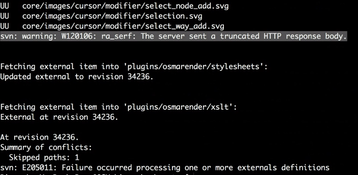 I just had a video call and we tried to update a svn clone of the plugins repository.