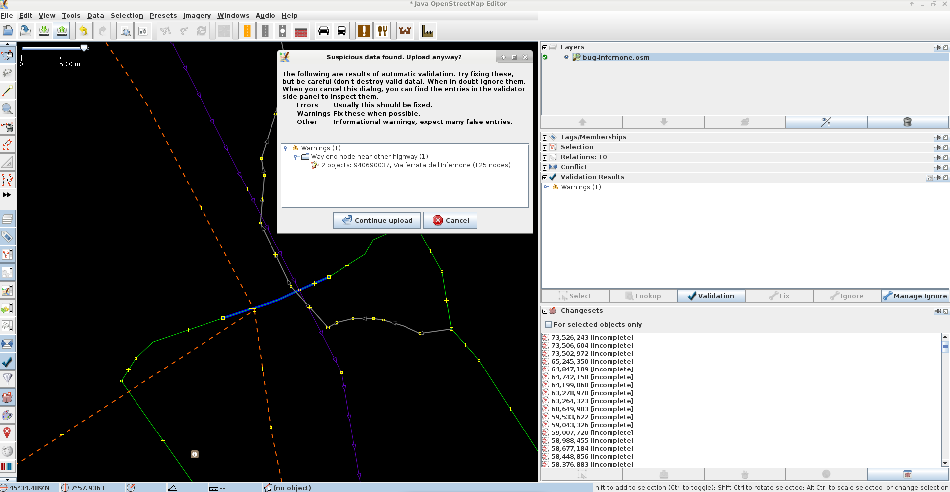 - Run validation on Way: Via ferrata dell'Infernone (osmwww:way/224887680)