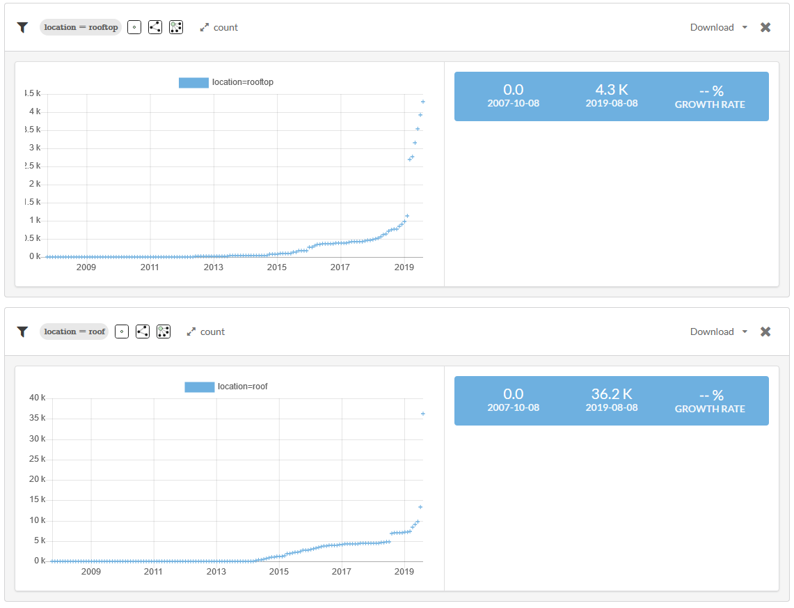 - location=rooftop possible synonym for roof (makes it clear it is on top of the roof). Only ~30% usage compared to roof.