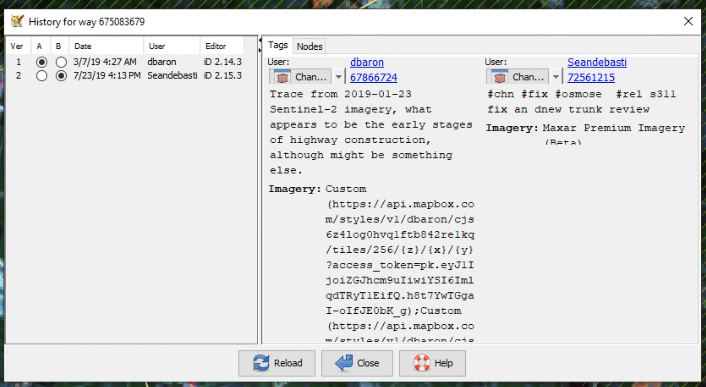 URL:https://josm.openstreetmap.de/svn/trunk Repository:UUID: 0c6e7542-c601-0410-84e7-c038aed88b3b Last:Changed Date: 2020-09-06 16:54:59 +0200 (Sun, 06 Sep 2020) Build-Date:2020-09-07 01:30:48 Revision:17013 Relative:URL: ^/trunk Identification: JOSM/1.5 (17013 en) Windows 10 64-Bit OS Build number: Windows 10 Home 2004 (19041) Memory Usage: 1262 MB / 2709 MB (441 MB allocated, but free) Java version: 1.8.0_261-b12, Oracle Corporation, Java HotSpot(TM) 64-Bit Server VM Look and Feel: com.sun.java.swing.plaf.windows.WindowsLookAndFeel Screen: \Display0 1920x1080 (scaling 1.0x1.0), \Display1 1080x1920 (scaling 1.0x1.0) Maximum Screen Size: 1920x1920 Best cursor sizes: 16x16 -> 32x32, 32x32 -> 32x32 Dataset consistency test: No problems found Plugins: + Create_grid_of_ways (35405) + FastDraw (35499) + apache-commons (35524) + apache-http (35092) + buildings_tools (35500) + ejml (35313) + geotools (35169) + gridify (1588746833) + jaxb (35092) + jna (35092) + jts (35122) + mapwithai-dev (c5dccd6) + opendata (35513) + reverter (35499) + terracer (35499) + utilsplugin2 (35487) Tagging presets: + E:\Nextcloud\Documents\Openstreetmap\JOSM presets\CellTower.xml + E:\Nextcloud\Documents\Openstreetmap\JOSM presets\motorway_link.xml + E:\Nextcloud\Documents\Openstreetmap\JOSM presets\TunnelLayerPreset.xml + E:\Nextcloud\Documents\Openstreetmap\JOSM presets\BridgeLayerPreset.xml Map paint styles: + https://josm.openstreetmap.de/josmfile?page=Styles/MapWithAI&zip=1 Last errors/warnings: - 03052.816 W: No default layer selected, choosing first layer. - 07509.804 W: java.net.SocketTimeoutException: connect timed out - 07509.804 W: java.net.SocketTimeoutException: connect timed out - 07509.807 W: java.net.SocketTimeoutException: connect timed out - 07524.815 W: java.net.SocketTimeoutException: connect timed out - 07524.846 W: java.net.SocketTimeoutException: connect timed out - 07532.525 W: Conflicts detected - <html>There was 1 conflict detected.</html>