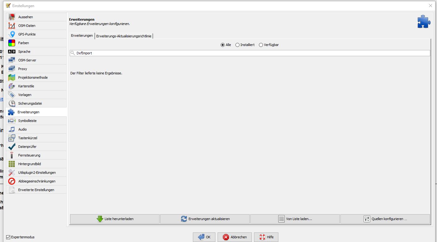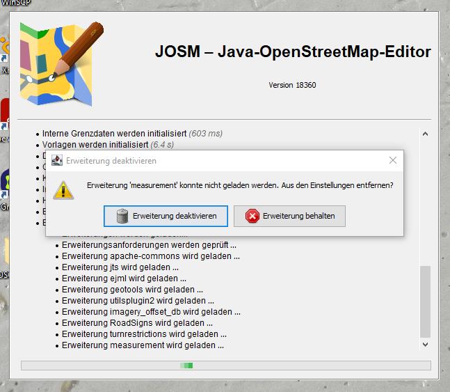 But I am unfortunatly not able to manually update measurement, the same with any other plugin. I still receive no entry in the download list, after clicking the button 'Erweiterungen installieren' (for this I marked 'measuremant' from the 'available' list, not from the 'installed' plugins). I get the response that all installed plugins are up to date and JOSM does not need to download a newer version.