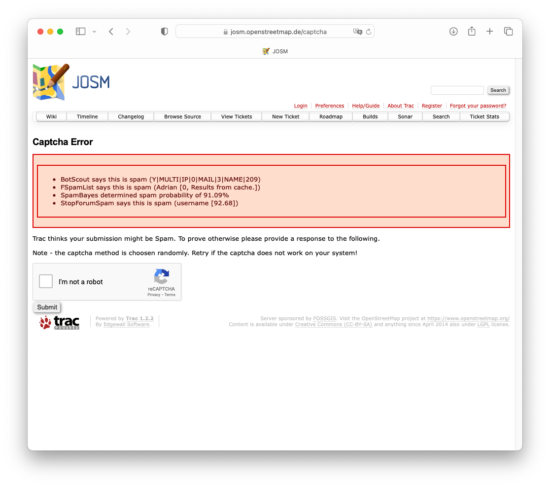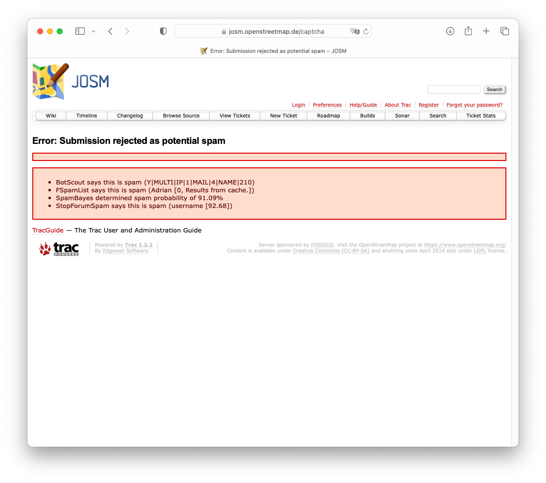 Emails on JOSM's Trac have been extracted and used to SPAM