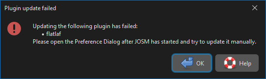 Flatlaf plugin fails with message "Updating the following plugin has failed: 'flatlaf'. Please open the Preferences dialog after JOSM has started and try to update it manually".