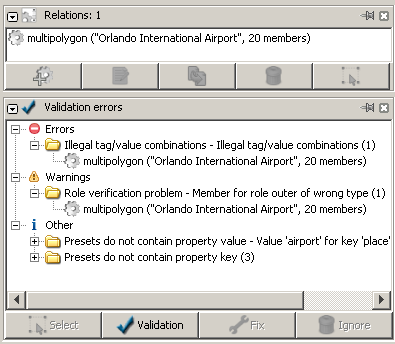 Whey I load relation 1144866 in JOSM and run the validator, I get an
