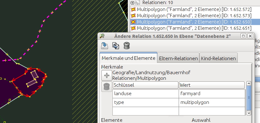 In Relations landuse=farmyard must translate to "Bauernhof" and not to "Farmland" because landuse=farm and landuse=farmland is translated to "Farmland" too. That's wrong and confusing
