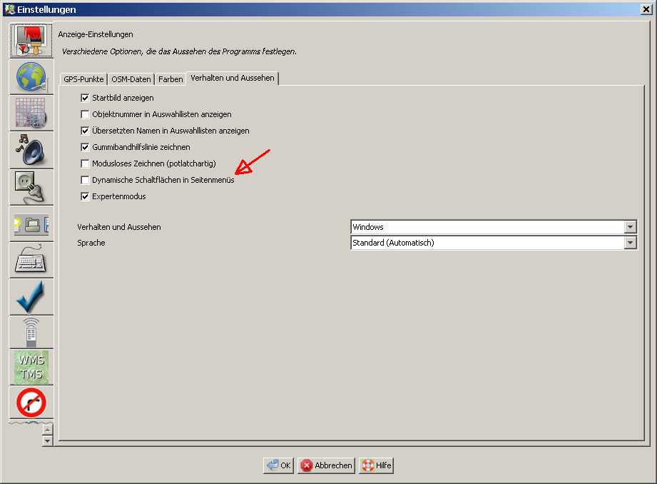 - "Dynamische Schaltflächen in Seitenmenüs" aktiviert