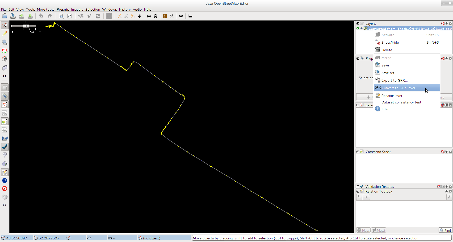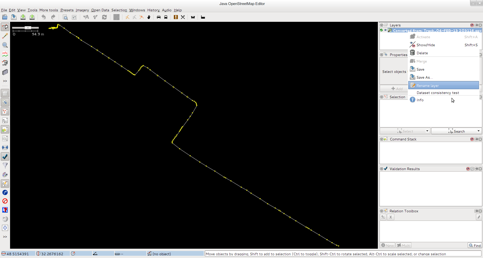 - open gpx track in JOSM